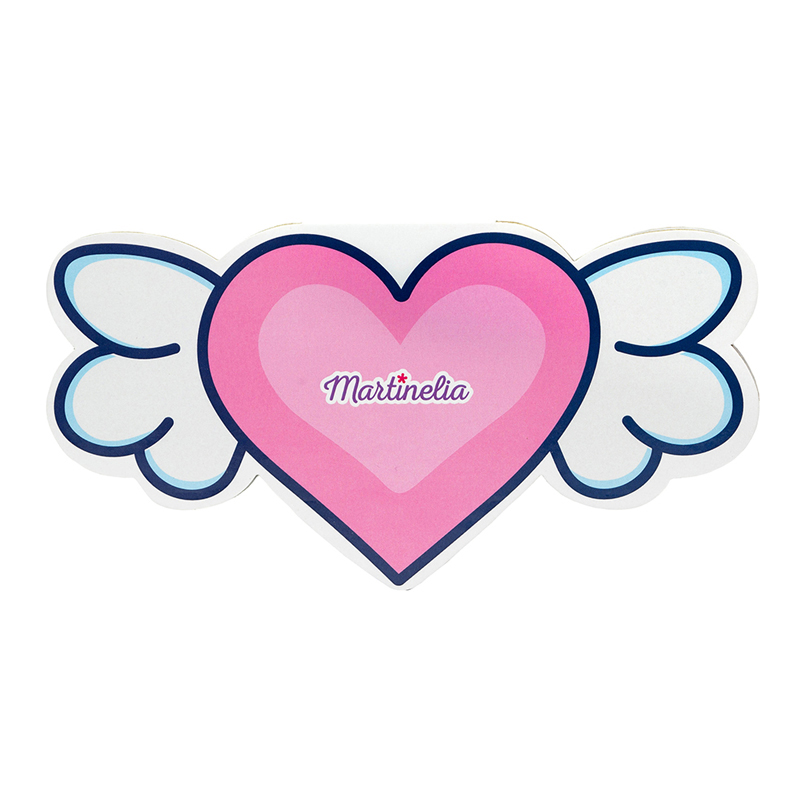 Martinelia Super Girl Heart Palette by FOLIA COSMETICS – παιδική multi παλέτα σε σχήμα φτερωτής καρδιάς που περιλαμβάνει 12 διαφορετικά χρώματα glitter σκιών σε compact μορφή, 6 shimmer lip gloss, 3 glitter κρέμες προσώπου και 2 πινελάκια Δερματολογικά Ελεγμένα.