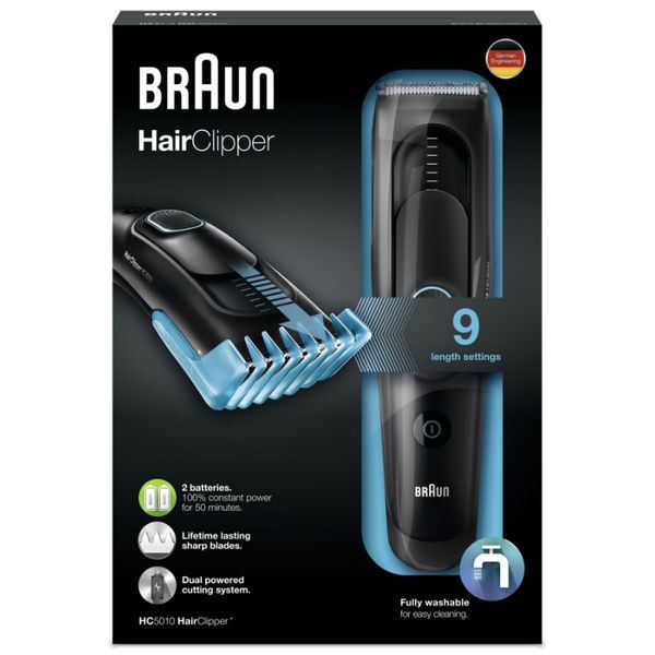 Κουρευτική μηχανή HC5010 Braun με ισχυρή διπλή μπαταρία για μεγάλη αυτονομία. Διαθέτει κλείδωμα με σύστημα μνήμης που κλειδώνει, απομνημονεύοντας την τελευταία χρήση. Κουρευτική μηχανή HC5010 Braun με πρακτικό προσαρμογέα μήκους που παρέχει 9 ρυθμίσεις μήκους. Για να προσαρμόσεις το στιλ σου χρησιμοποίησε το χτενάκι με τη δυνατότητα ρύθμισης και δημιουργήσε διαφορετικά look για κάθε περίσταση. Κοφτερές λεπίδες για μία ζωή. Οι λεπίδες στις κουρευτικές μηχανές της Braun αντέχουν για πάντα παρέχοντας υψηλή ακρίβεια στο στιλ σου. Πλήρως πλενόμενη Πολύ εύκολος καθαρισμός με απλό ξέπλυμα στη βρύση για απόλυτη υγιεινή. Ρεύματος & Επαναφορτιζόμενη Κατασκευασμένη με διπλό σύστημα μπαταρίας. Οι δύο μπαταρίες Ni-MH φορτίζονται πλήρως σε 8 ώρες με αυτονομία λειτουργίας 50 λεπτών. Σύστημα μνήμης SafetyLock Έξυπνο σύστημα μνήμης το οποίο κλειδώνει και απομνημονεύει την τελευταία ρύθμιση μήκους ακόμη και μετά την αφαίρεση του εξαρτήματος. Ισχυρή και μαλακή λαβή για άνετο και ασφαλές χειρισμό. ΧΑΡΑΚΤΗΡΙΣΤΙΚΑ: Τύπος Λειτουργίας: Ρεύματος/ Επαναφορτιζόμενη Διάρκεια Αυτονομίας (min): 50 Θέσεις Κοπής: 9 Ρύθμιση Μήκους (mm): 0,5 - 13 Κατάλληλο για Οικιακή χρήση Πλάτος Κοπής (mm): 40 Υλικό Λεπίδων Ανοξείδωτες & Αυτοακονιζόμενες Πλενόμενη Κεφαλή: Διαθέτει Ρύθμιση: Χειροκίνητη Οθόνη Ενδείξεων: Δεν διαθέτει Χρόνος Φόρτισης (ώρες): 8.