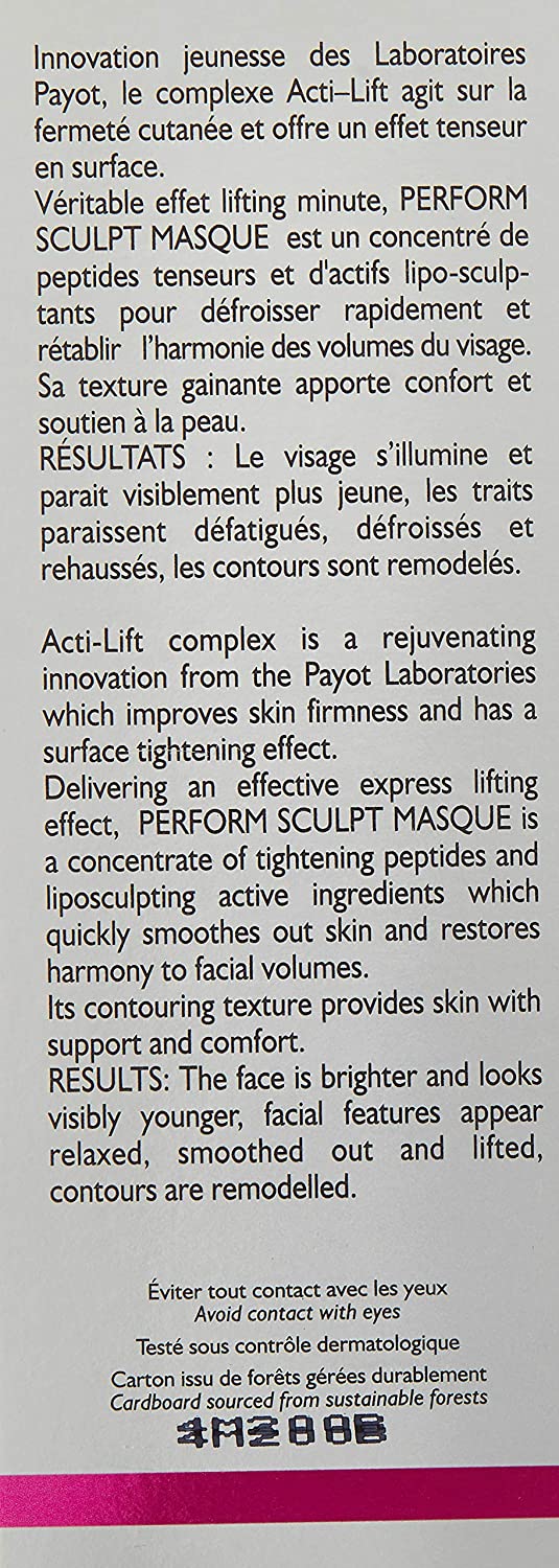 Περιγραφή Μάσκα σύσφιξης Lipo Sculpting. Οφέλη Ένα γρήγορο ανυψωτικό αποτέλεσμα για την αποκατάσταση της αρμονίας στους όγκους του προσώπου και για να φωτίζει το πρόσωπο. Προτεινόμενη χρήση Κρέμα μάσκας για εφαρμογή σε τέλεια καθαρισμένο λαιμό και πρόσωπο, αφήστε για 10 λεπτά και στη συνέχεια αφαιρέστε με βαμβάκι.