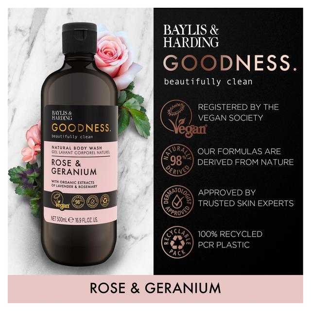 Baylis & Harding Goodness Rose & Geranium natural body wash 500ml