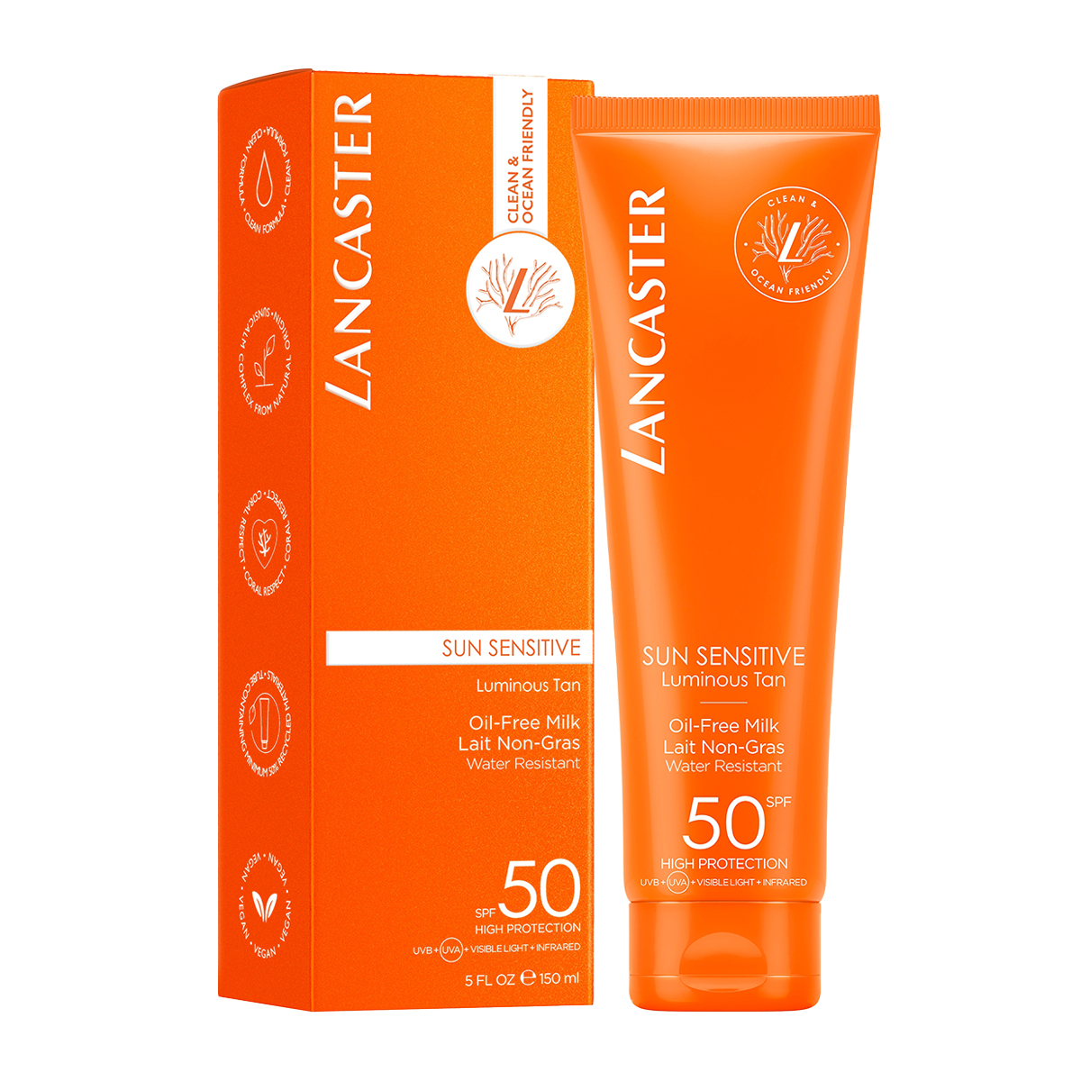 Η Sun Sensitive είναι η σειρά αντηλιακών της Lancaster με την καλύτερη απόδοση σε φόρμουλες υψηλής ανοχής για ευαίσθητο δέρμα. Η πατενταρισμένη Full Light Technology μας προστατεύει από τις ακτίνες UVA/UVB/Ορατό φως/Υπέρυθρες ακτίνες, ενώ το φυσικής προέλευσης Sunsicalm Complex καταπραΰνει και προστατεύει το ευαίσθητο δέρμα από φθορές που προκαλούνται από τον ήλιο. Καθαρή και φιλική προς τους ωκεανούς, αυτή η ελαφριά και χωρίς έλαια γαλακτώδης υφή, αόρατη μόλις εφαρμοστεί, προσφέρει ένα εξαιρετικά αισθησιακό φινίρισμα. Το δέρμα σας ομορφαίνει. Χρησιμοποιήστε αυτό το υψηλής ανοχής, μη κολλώδες oil-free γαλάκτωμα με δείκτη SPF50 για άνετη αίσθηση στο δέρμα σας.