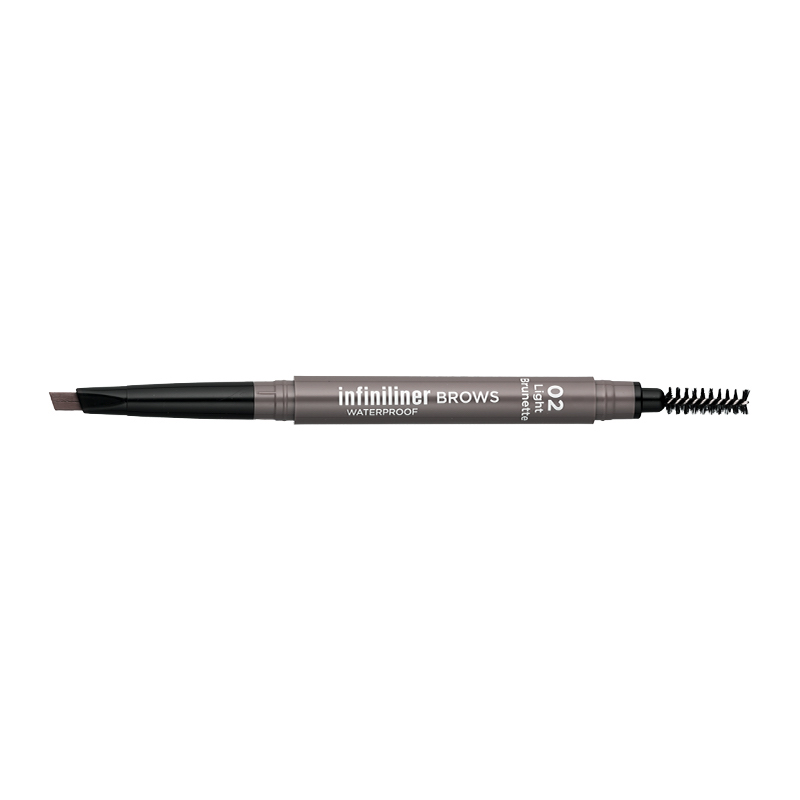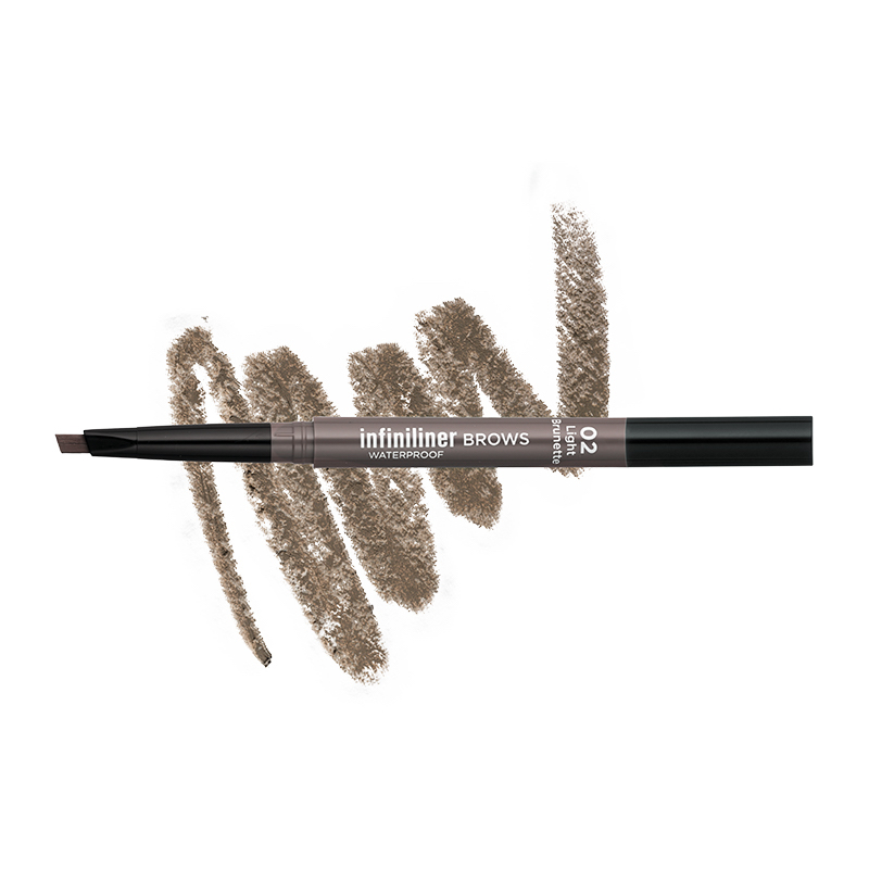 Το Infiniliner Gel Brow Pencil είναι ένα μαλακό κρεμώδες μολύβι φρυδιών με αδιάβροχη gel σύνθεση και φυσικό τελείωμα με υφή πούδρας. Το τριγωνικό σχήμα που διαθέτει, προσφέρει εύκολη και ακριβή εφαρμογή, για να γεμίζεις με απόλυτη λεπτομέρεια τα σημεία που επιθυμείς και να δίνεις σχήμα στα φρύδια σου, δημιουργώντας εντυπωσιακό βλέμμα που παραμένει σταθερό για ώρες. Ο περιστρεφόμενος μηχανισμός του επιτρέπει τον πλήρη έλεγχο ενώ η άλλη μεριά περιέχει βουρτσάκι για να απλώνεις ομοιόμορφα το προϊόν και να χτενίζεις τις τρίχες των φρυδιών σου.